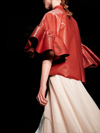 美しい発色と多彩なカラーバリエーション、極細繊維が生み出すソフトな手触りと上質な素材感が、クリエイションの可能性を飛躍的に広げます。さらに、優れた耐久性と適度な通気性・透湿性、メインテナンスも簡単でウォッシャブル、断ち切りや後加工の自由度の高さが、ファッション素材として幅広い領域で評価され、メゾンブランドをはじめ数多くの実績を積み重ねてきました。天然皮革に比べて軽量・均質であり、リサイクルPETや植物由来PETの導入によるエシカル消費への訴求もポイントです。