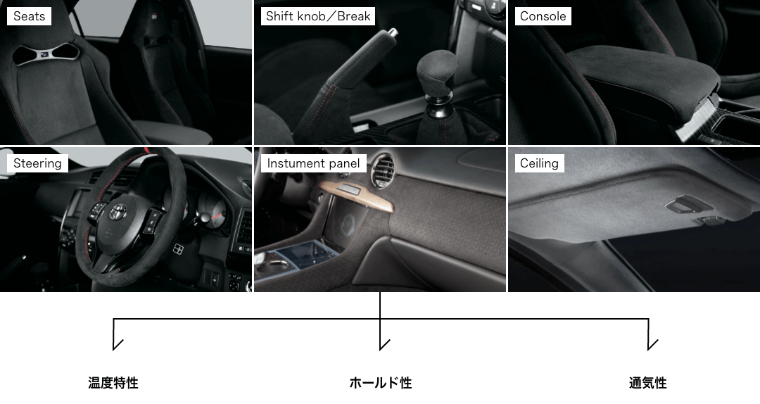 過酷な環境に対応する優れた耐久性と高い通気性、耐候性などの機能面に加えて上質感を求められる自動車内装素材。