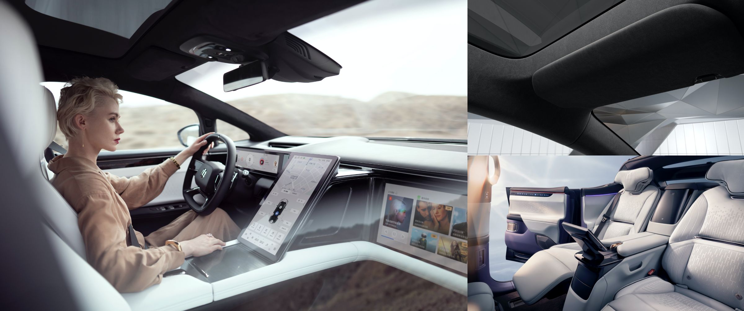 スマート技術で運転手の行動データを感知するHiPhi Xに採用された、エレガントで高純度のカラー、繊細な質感と軽やかで快適な通気性を持つUltrasuede®は、搭乗者に新たな体験を提供します。