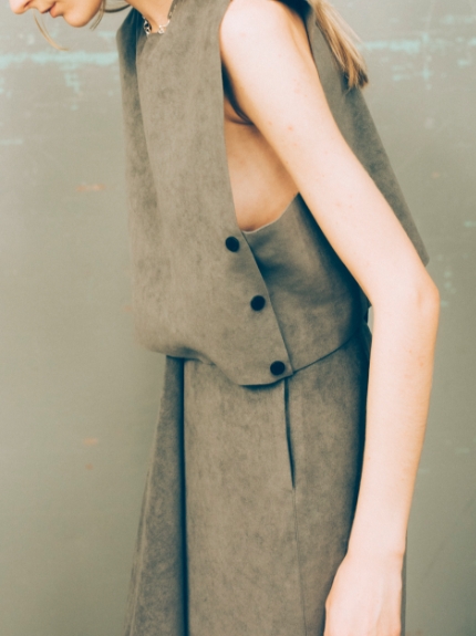 This is a document to show several ways to utilize Ultrasuede® when sewing. It proposes sewing designs that take advantage of the features of Ultrasuede®, such as cut-outs, butt-joint sewing, and integrated body pockets.