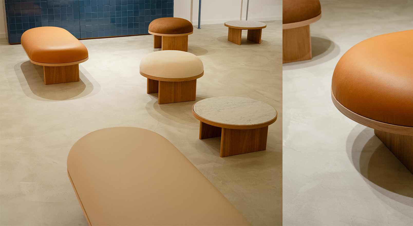 The showroom, fully designed by the two designers themselves, has been crafted as an elegant exhibition space that maximizes the luxurious texture and exceptional functionality of Ultrasuede ™. Also on display is the new pouf & benches “ANZA,” designed by the same duo in collaboration with the Danish furniture brand PLEASE WAIT to be SEATED, featuring Ultrasuede™ as its upholstery material.