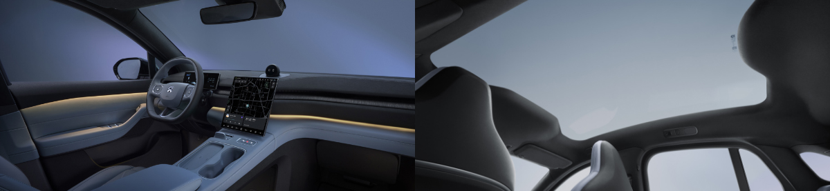 The new EC6 inherits the philosophy of giving passengers a second living room with its enveloping interior. Fine details such as invisible smart air vents, deco strips with a gentle gloss and polished microswitches create a space that is simple and sleek. Also, acoustic conditions are optimized in a total of 59 areas, enabling excellent noise, vibration, and harshness (NVH) performance. The use of Ultrasuede® in the ceiling, pillars and sun visors gives the vehicle a luxurious and warm atmosphere. The roof features a large 1.770 m2 panoramic sunroof that allows for a daylighting area of 1.156 m2, along with a 4.96 mm double-layer heat/sound insulating glass as standard, bringing sunlight and warmth into the vehicle.