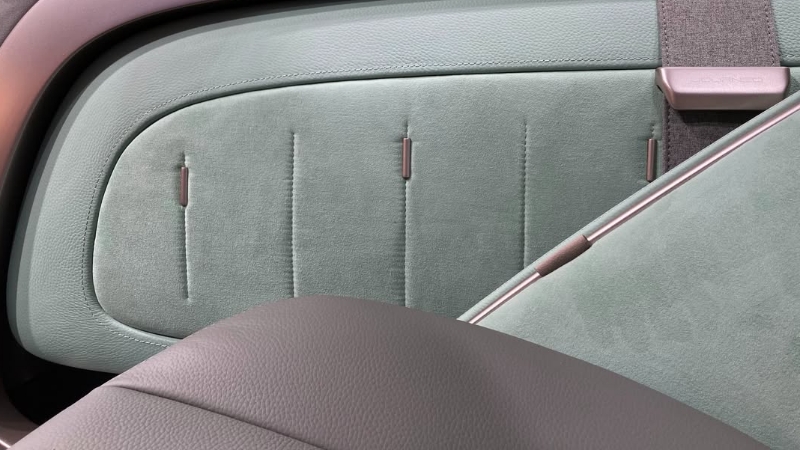 Ultrasuede®は、シート、ドアパネル、インパネ、ステアリングに採用されています。Ultrasuede®に施されたJOURNEOのモノグラムパターンは、デジタルレーザー加工によって開発されました。 サトウキビの廃糖蜜を原料とするポリエステルエチレングリコールやヒマシ油由来のポリウレタンなど、植物由来原料を約26%使用したUltrasuede®が採用されています。環境に優しい素材でありながら、上質で滑らかな質感を持つUltrasuede®は、エレガントで快適な車内空間を実現します。Ultrasuede®は、このコンセプトモデルに革新と環境に配慮したデザインを実現するために最適な素材でした。
