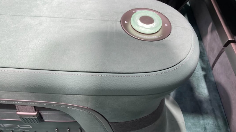 フロントシートとコンソールは床下に隠されたレール上を移動する可動式となり、高級リビングルームのような室内空間で「家具」を柔軟に配置することができます。快適さをもたらす機能として、取り外し可能なドアインサートも含まれています。これは枕として転用することができ、キャビンのどこにでも置くことができます。リアベンチの背もたれを開くとゆったりとしたラグジュアリーなラウンジスペースに変わり、広々としたガラスのテールゲートを通して遮るもののない景色を楽しむことができます。フロントシートのセルフバランス技術により、起伏の多い地形でもスムーズな乗り心地を実現します。